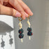 COMPOSITION - handwoven with delicate glass Japanese seed beads. each earring comes with 2 olives on a hand twisted "wooden" pick